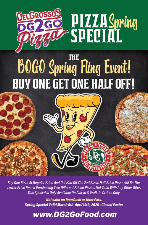 Please note: DG2Go Pizza Shop Special offers/discounts are not valid for orders placed through DoorDash. These promotions are exclusively available for call-in/walk-in orders.